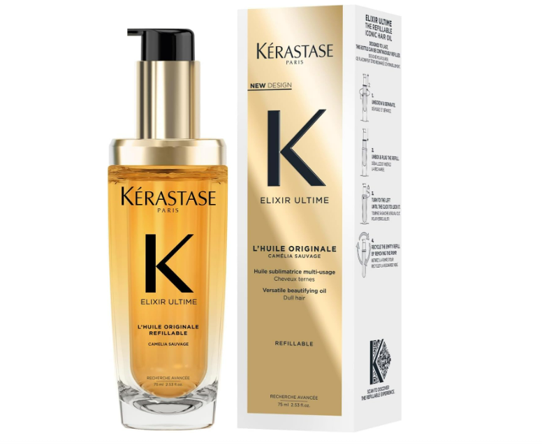 Say goodbye to dry, dull hair with this luxurious hair oil. The Kérastase Elixir Ultime Hair Oil has an incredible texture that softens and hydrates strands without leaving your hair greasy or weighed down. It's a holy grail product that has stood the test of time, and it's now available in a chic, refillable package.