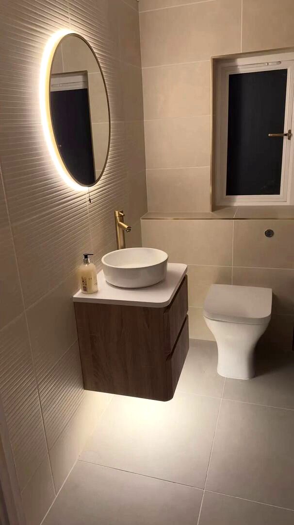 Adding a touch of real luxury, ambient lighting was installed behind the mirror. This subtle detail significantly enhanced the sophisticated atmosphere, creating a world of difference from the bathroom's previous state.