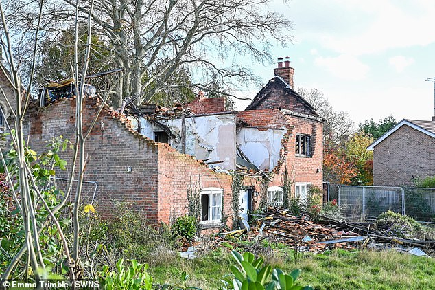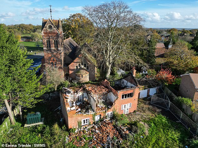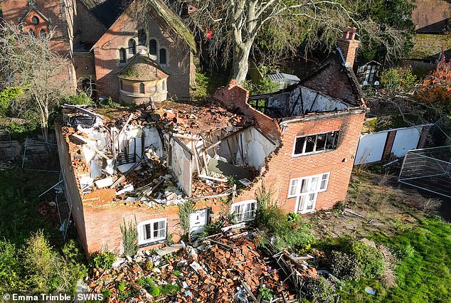 The extent of the damage is starkly evident in striking imagery, which reveals piles of rubble and broken timber scattered across the grounds. The interior of the house remains largely exposed to the elements, a poignant testament to the destructive forces it has endured. Bricks appear to be spilling from the remnants of the first floor, cascading across what was once a welcoming front garden, painting a picture of utter devastation.