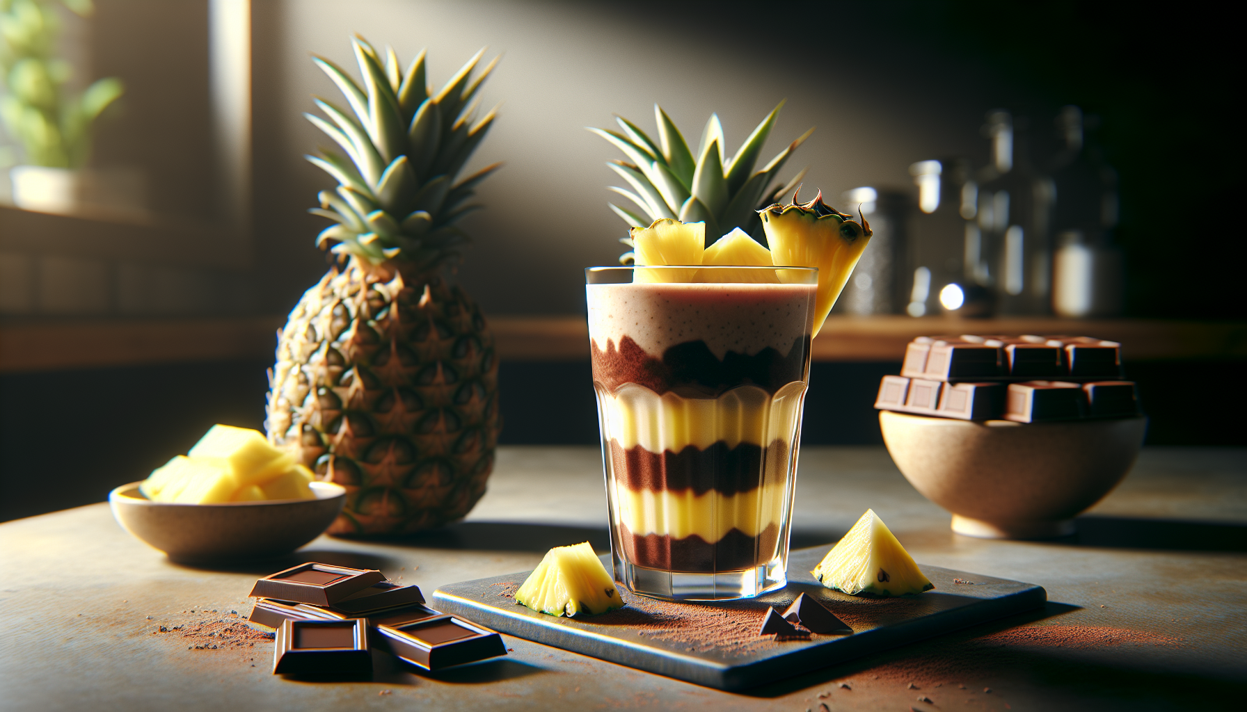 Pineapple and Chocolate Smoothie For a quick, gourmet drink that packs a punch, look no further. This pineapple and dark chocolate smoothie is a decadent yet refreshing concoction that’s perfect for a pick-me-up any time of day.