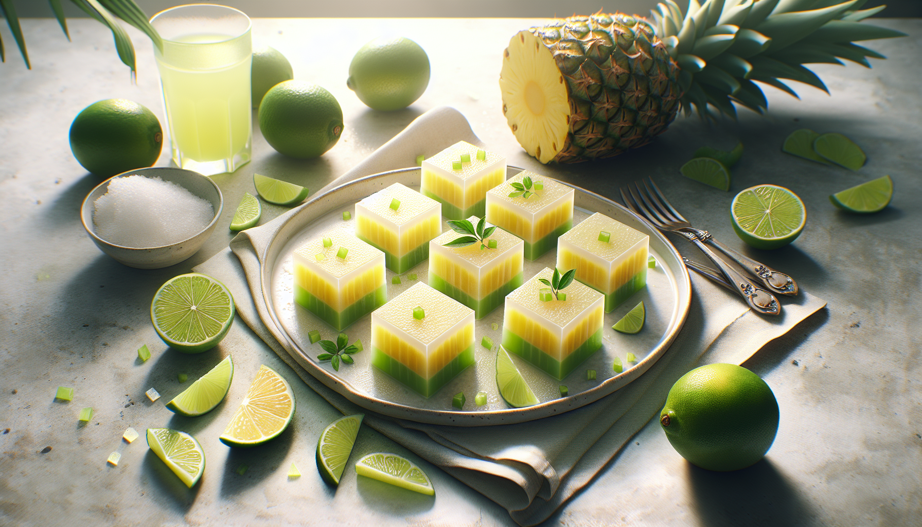Lime and Pineapple Squares with Ginger Snap Base For a dessert with a bit of a zing, these lime and pineapple squares are a winner. Nestled on a crunchy Ginger Snap cookie base, this easy-to-make tropical delight is ideal for any occasion, offering a perfect balance of tart and sweet.
