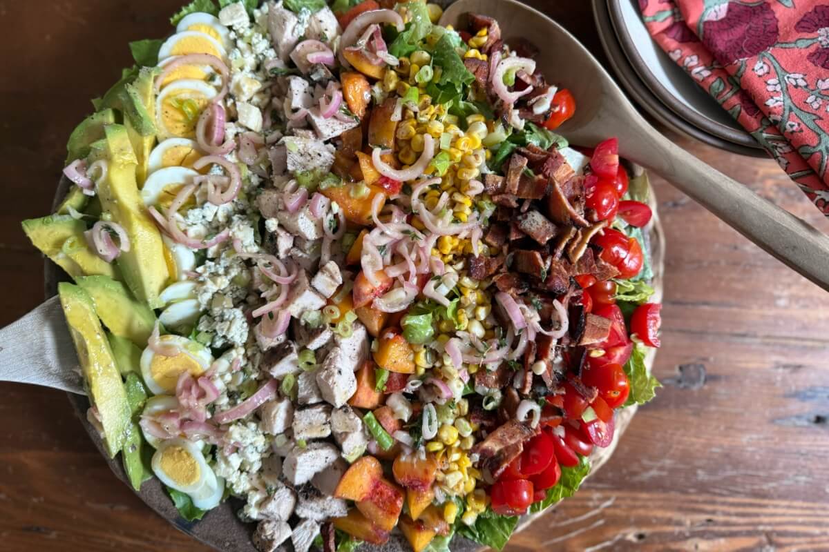 This summery twist on the traditional Cobb salad incorporates sweet, juicy peaches and grilled corn for an elevated experience. While retaining the classic elements of chicken, bacon, avocado, and blue cheese, the addition of seasonal fruits creates a dish suitable for various occasions, from a simple lunch at home to a casual dinner on the patio or a shared dish at a weekend cookout.