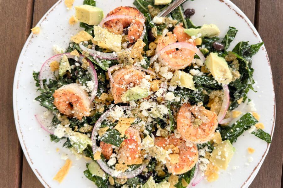 Southwest Shrimp Kale Salad with Pepito-Lime Dressing