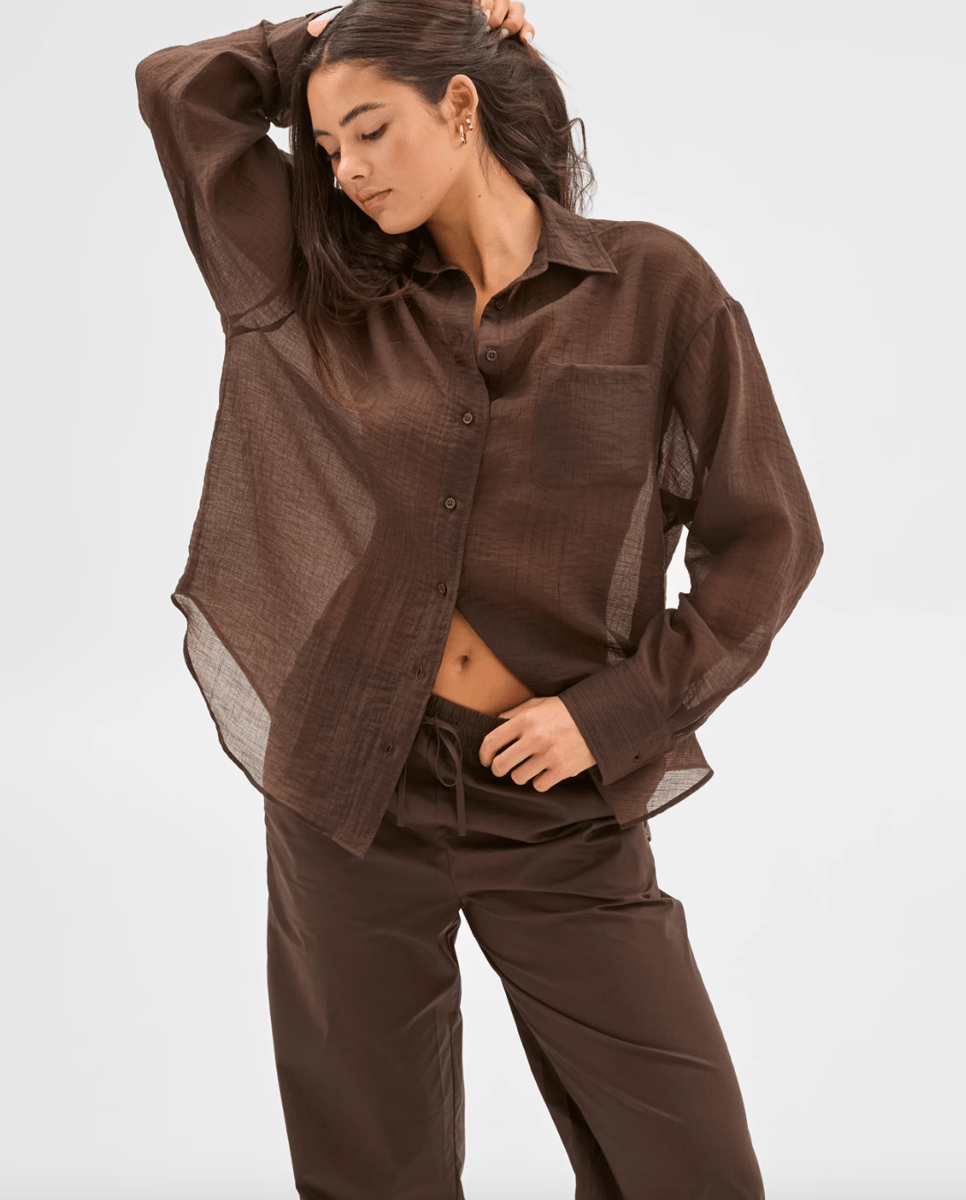 Target Sheer Relaxed Shirt Deep Brown, $40.