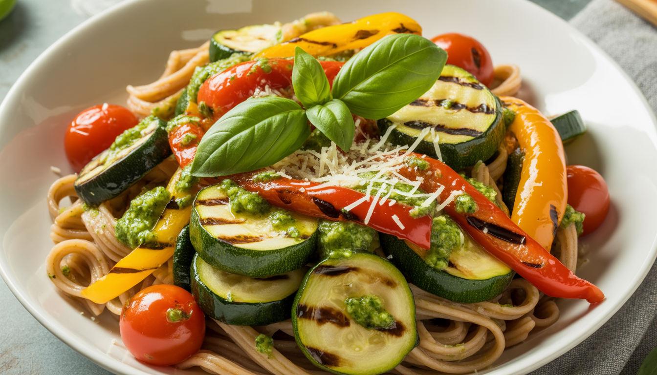 Wholegrain pasta provides more fiber than white pasta. Add grilled vegetables (zucchini, peppers, cherry tomatoes) and homemade pesto for a quick, nutritious supper. This dish appeals to everyone, even the pickiest eaters. As an added bonus, it takes less than 20 minutes to prepare, perfect for busy weeknights.
