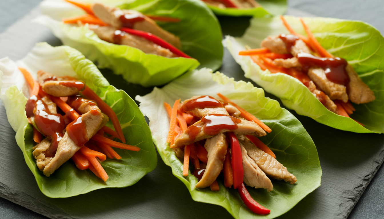 Lettuce wraps are a light alternative to classic sandwiches. Top them with sautéed chicken, grated carrots, peppers and a homemade Asian sauce. It's fresh, crunchy and full of flavor. This dish is also perfect for next-day lunches, as it's easy to transport and stays delicious cold.