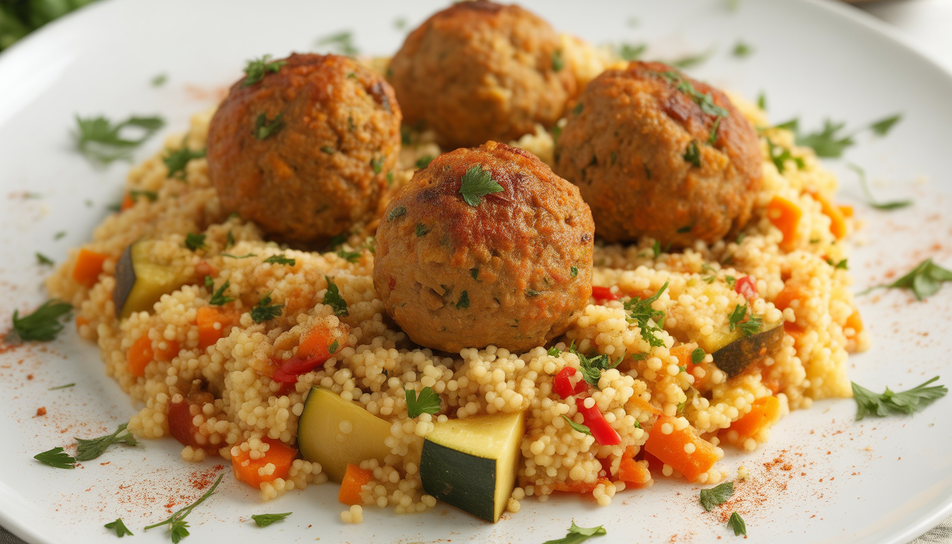 Turkey meatballs are lighter than beef meatballs, but just as tasty. Served on a bed of vegetable couscous, they provide a complete and balanced meal. Spices such as cumin and coriander spice things up. It's also a perfect dish for introducing children to new flavors.