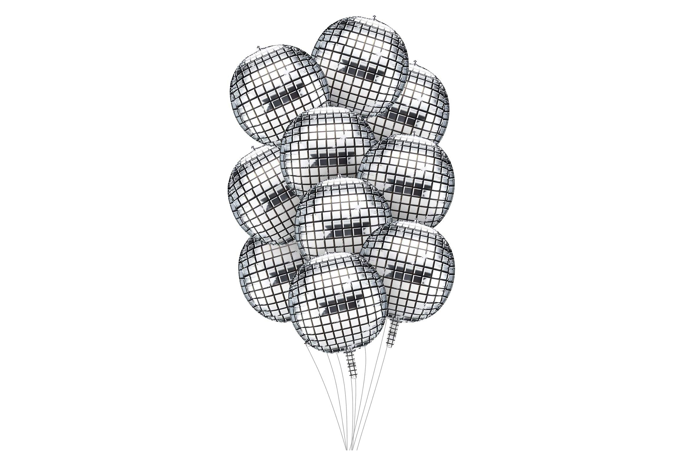 Paying homage to disco legends like ABBA, this pack of ten mirror ball-themed balloons is a festive addition to any celebration. These large, silver-foiled orbs can be inflated with either helium or air, adding a touch of sparkle to your event.