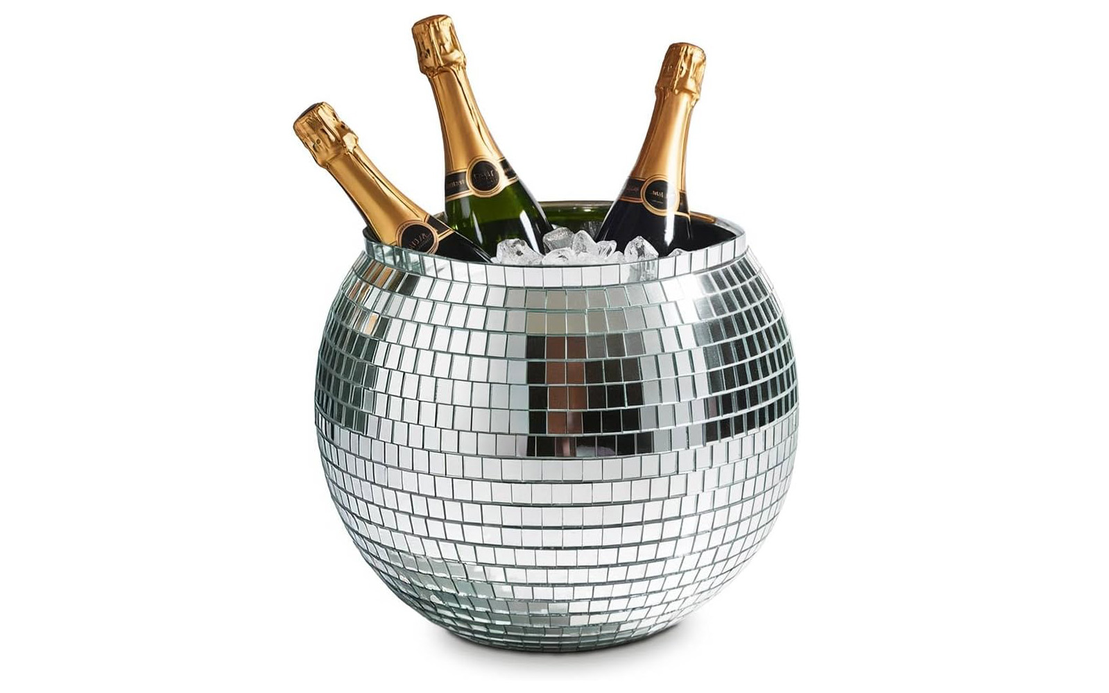 For those who appreciate decor that serves a dual purpose, this eye-catching disco ball ice bucket is a must-have. It's designed to keep up to three bottles of sparkling wine perfectly chilled, ensuring your celebrations remain stylish and your beverages cold.