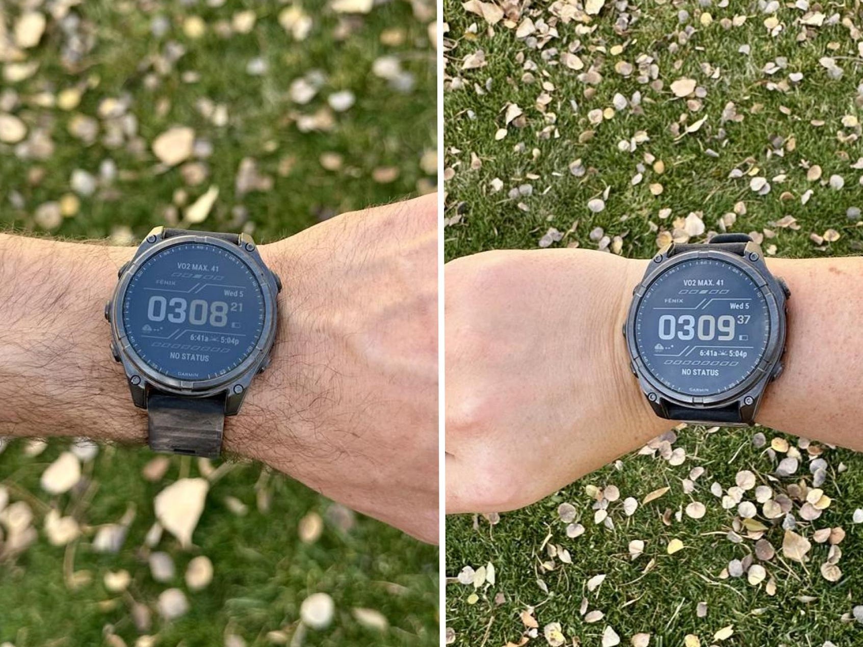 Off the trail, however, the size and weight became more noticeable. While typing on a keyboard at work or chopping vegetables for dinner, the watch's weight would cause it to constantly twist on the wrist, and its large size would sometimes press uncomfortably against wrist bones. Taking breaks from wearing the watch became a regular occurrence.