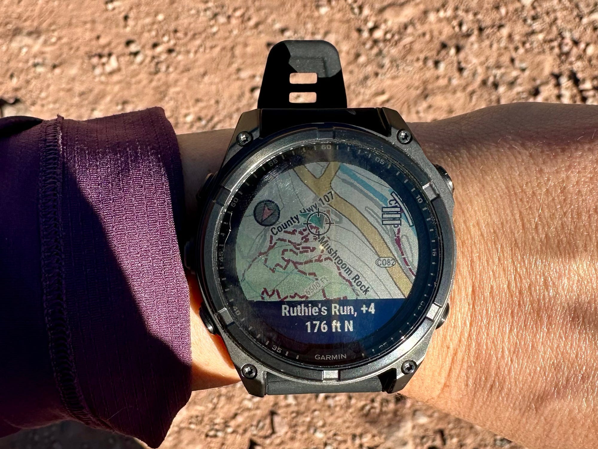 The button layout also lacks immediate intuitiveness. With five buttons, discerning their individual functions was not always straightforward. Unlike most devices where "select" and "back" functions are typically located on opposite sides, the Fenix 8 places both on the right side, with "select" at the top and "back" at the bottom. This necessitates a period of familiarization. More confusingly, the back button did not always return to the previous screen, leading to frequent disorientation within the menus. During one hike, it took a frustrating four minutes, while stopped on the trail, to exit the topographic map and locate the training analytics to check the duration of the hike.
