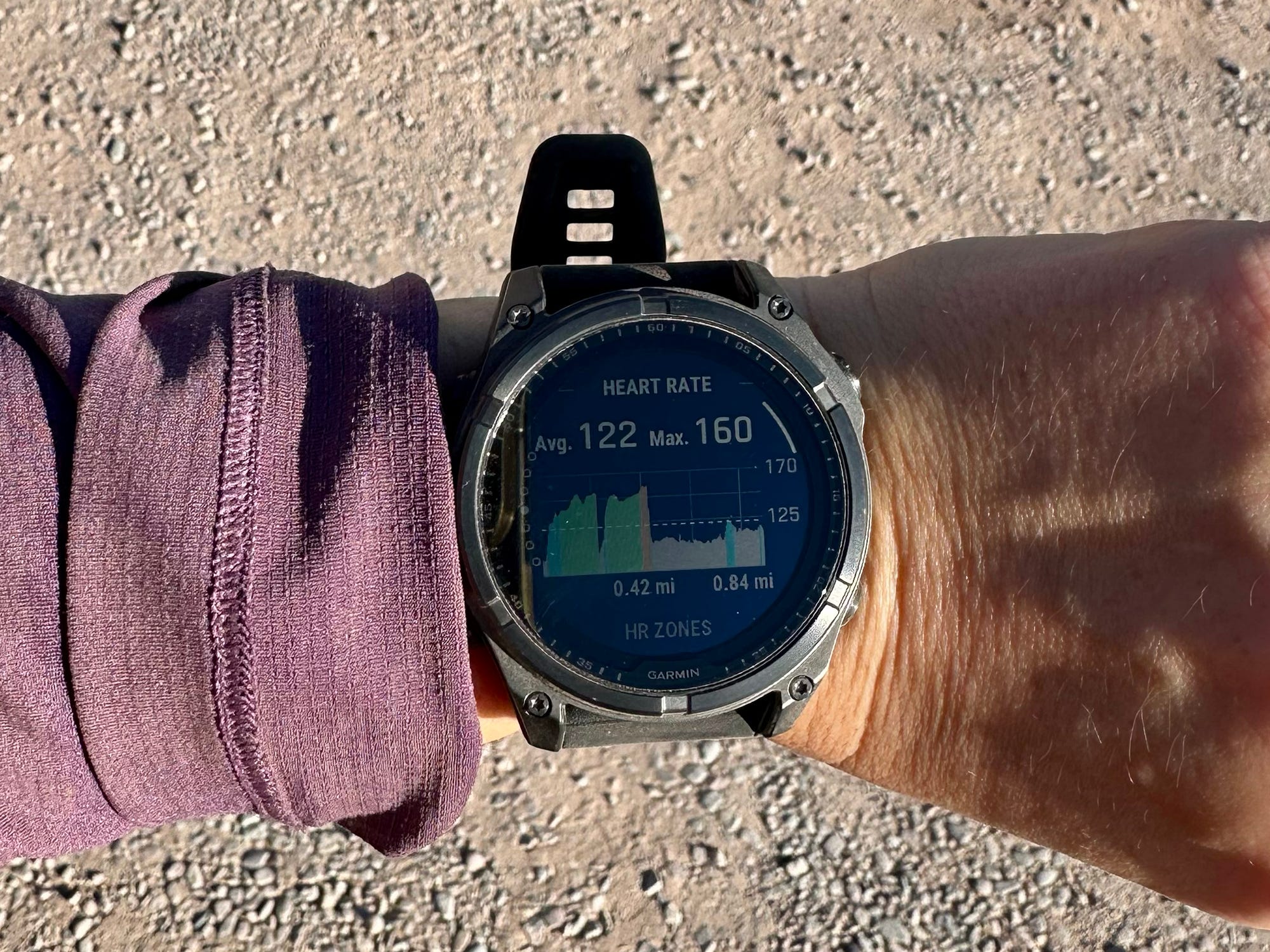 Considering the extensive technology and capabilities packed into the Fenix 8, its weight is understandable. It did not interfere with sleep or prove problematic during hiking, biking, or other adventuring activities, although it could feel cumbersome under long sleeves or tight ski jacket cuffs.