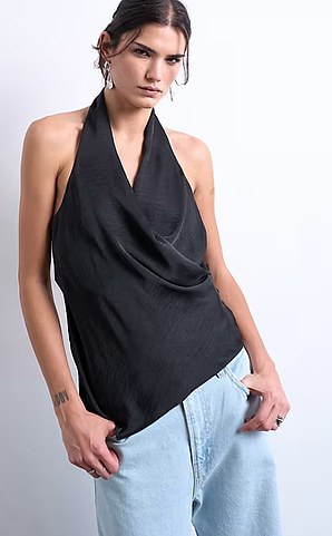 Satin halter top in black