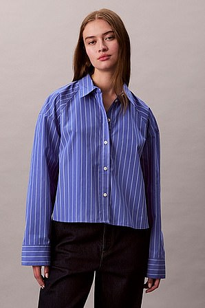 Stripe Cropped Boxy Button-Down Shirt