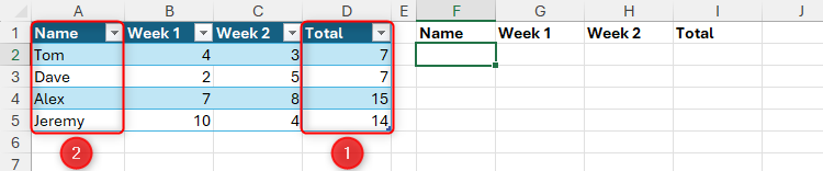 Notice how the extracted data is sorted by the Total column, and Dave and Tom—whose totals are the same—are sorted alphabetically.