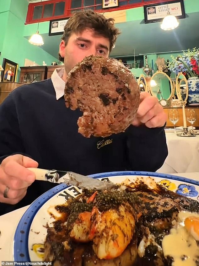 In the TikTok, Carmie picks apart the dish, trying the lobster, then caviar, then meat, showing each to the camera before tucking in.