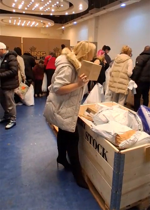 With security at the top, allowing only a few in at a time, shoppers have ten minutes to choose how many kilograms and packages they want, but they are not allowed to open the items before buying.
