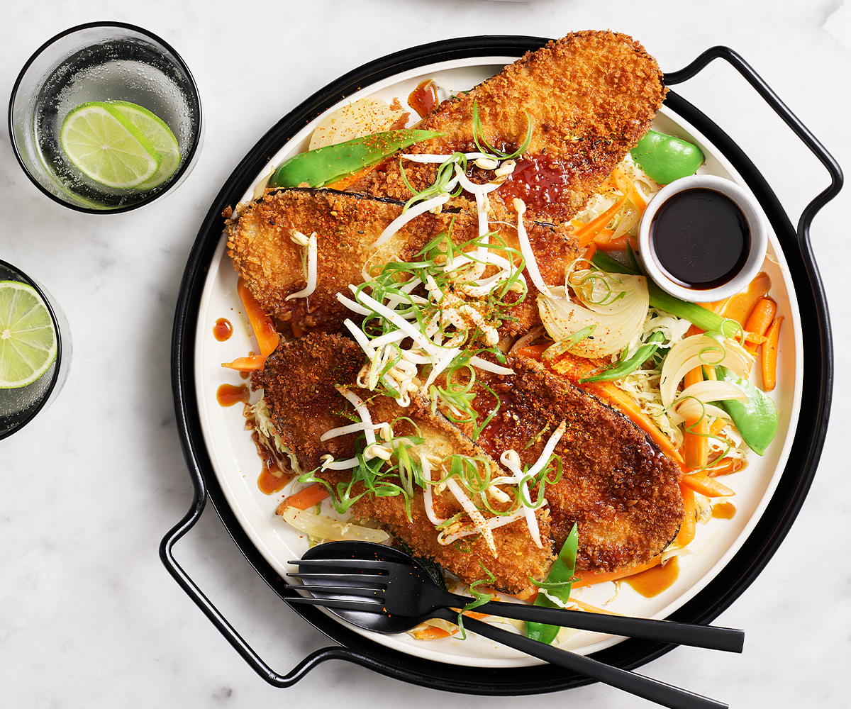 Crisp Eggplant Schnitzel with Yasai Itame
