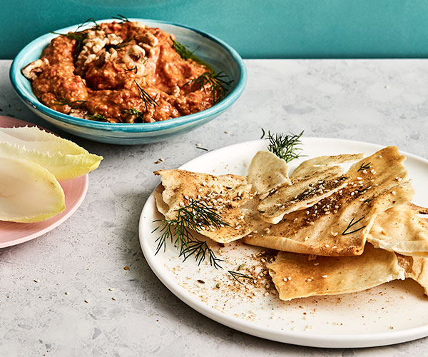 Smoky Eggplant and Capsicum Dip with Pita Bread