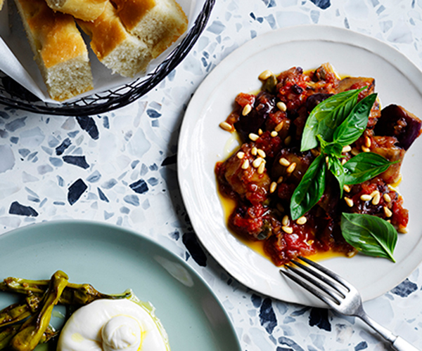 A flavour-packed dish from Bourke Street Bakery After Hours, this recipe combines the smoky sweetness of roast eggplant with the spicy kick of 'nduja and the creamy melt of scamorza cheese. -