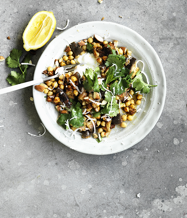 Chickpeas with Steamed Eggplant and Almonds