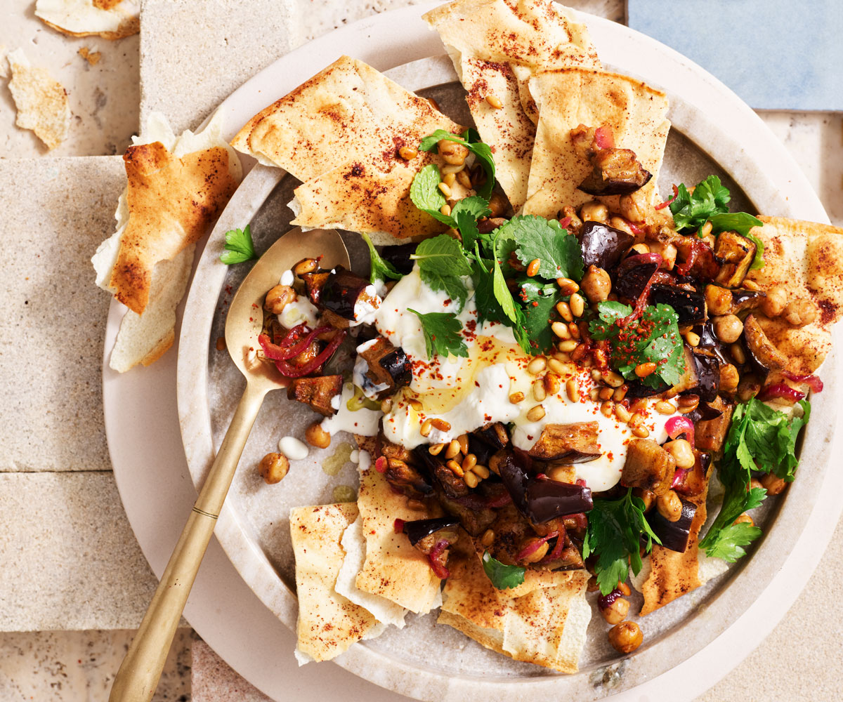 Shake up your morning routine with this fragrant and savoury Middle Eastern breakfast dish. The combination of spiced eggplant and chickpeas in fatteh is both comforting and exciting. -