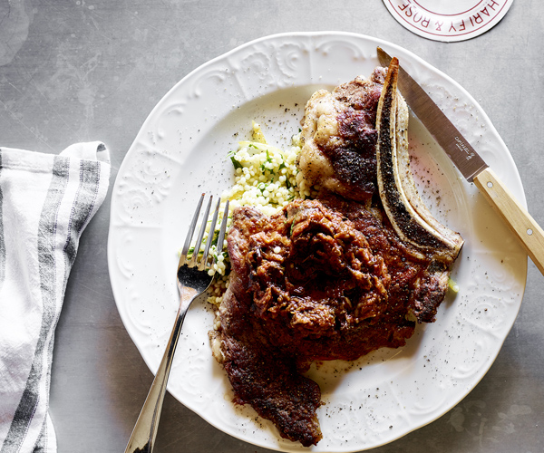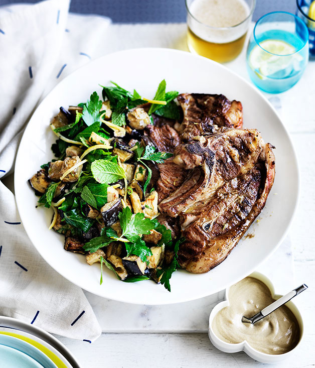 This fun dish designed for sharing pairs seared prime-rib minute steak with the vibrant flavours of Middle Eastern spiced eggplant and bright lemon couscous. -
