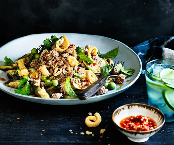 This fast recipe offers a flavourful pork and eggplant salad with a delightful kick from salted chilli. It’s a quick and satisfying meal. -
