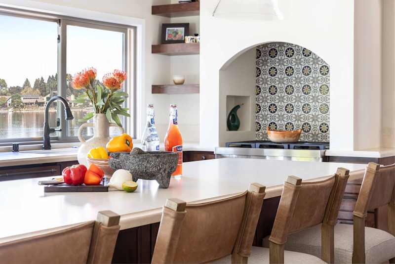 Alternatively, patterned tiles could be strategically placed above the range, as seen in some kitchens designed by Rebecca Ward Design. These applications can lend an entire kitchen an aged, European ambiance with remarkable ease. The use of accent tiles can also extend to fireplace surrounds, as demonstrated in a dining room by designer Kate McElhiney, further expanding their decorative potential.