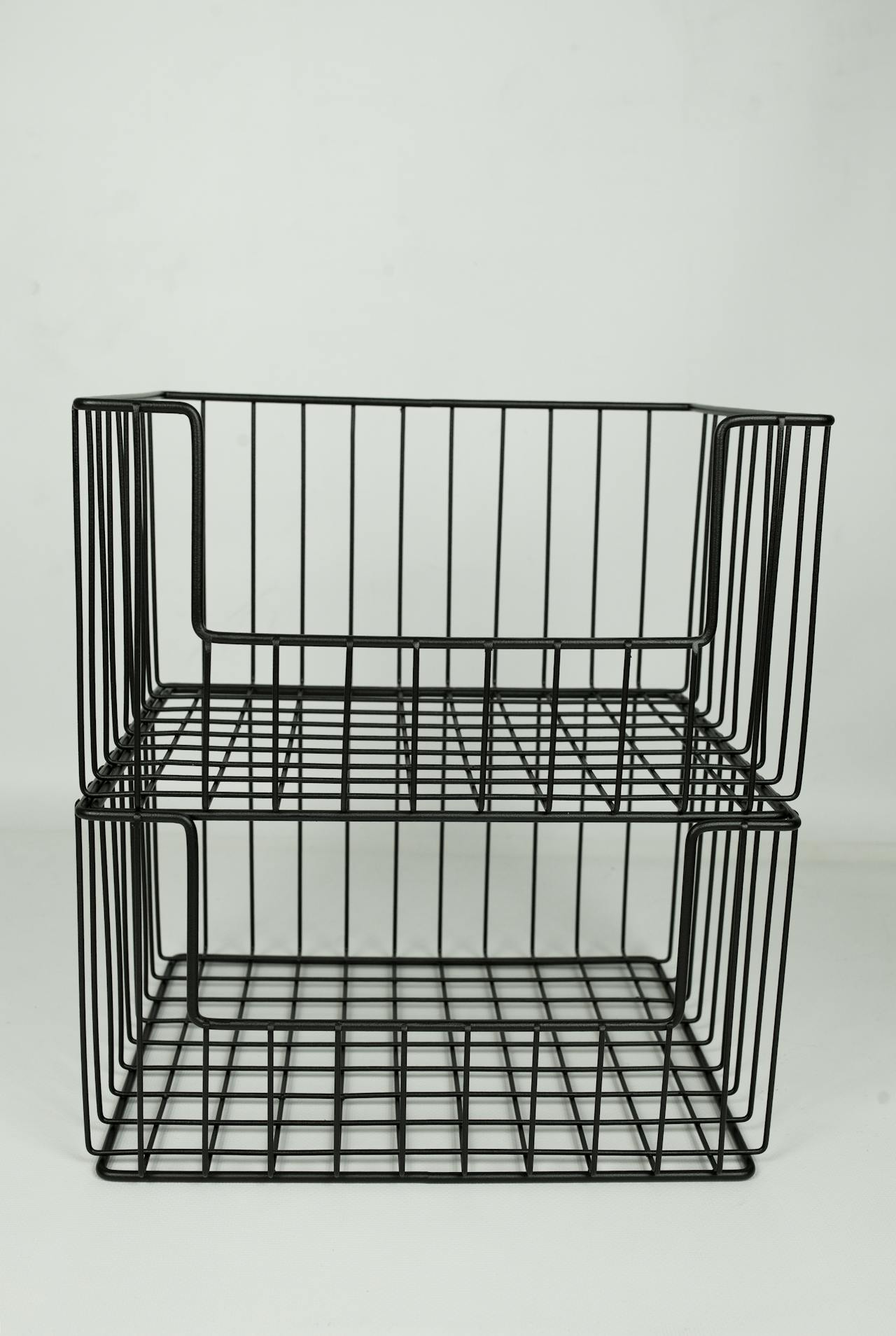 Its openwork structure creates a subtle play of shadows cast onto the walls and floor, giving a sense of visual lightness despite the metal’s sturdiness. Perfect for a contemporary or minimalist interior, it serves as a storage solution that’s as practical as it is stylish.