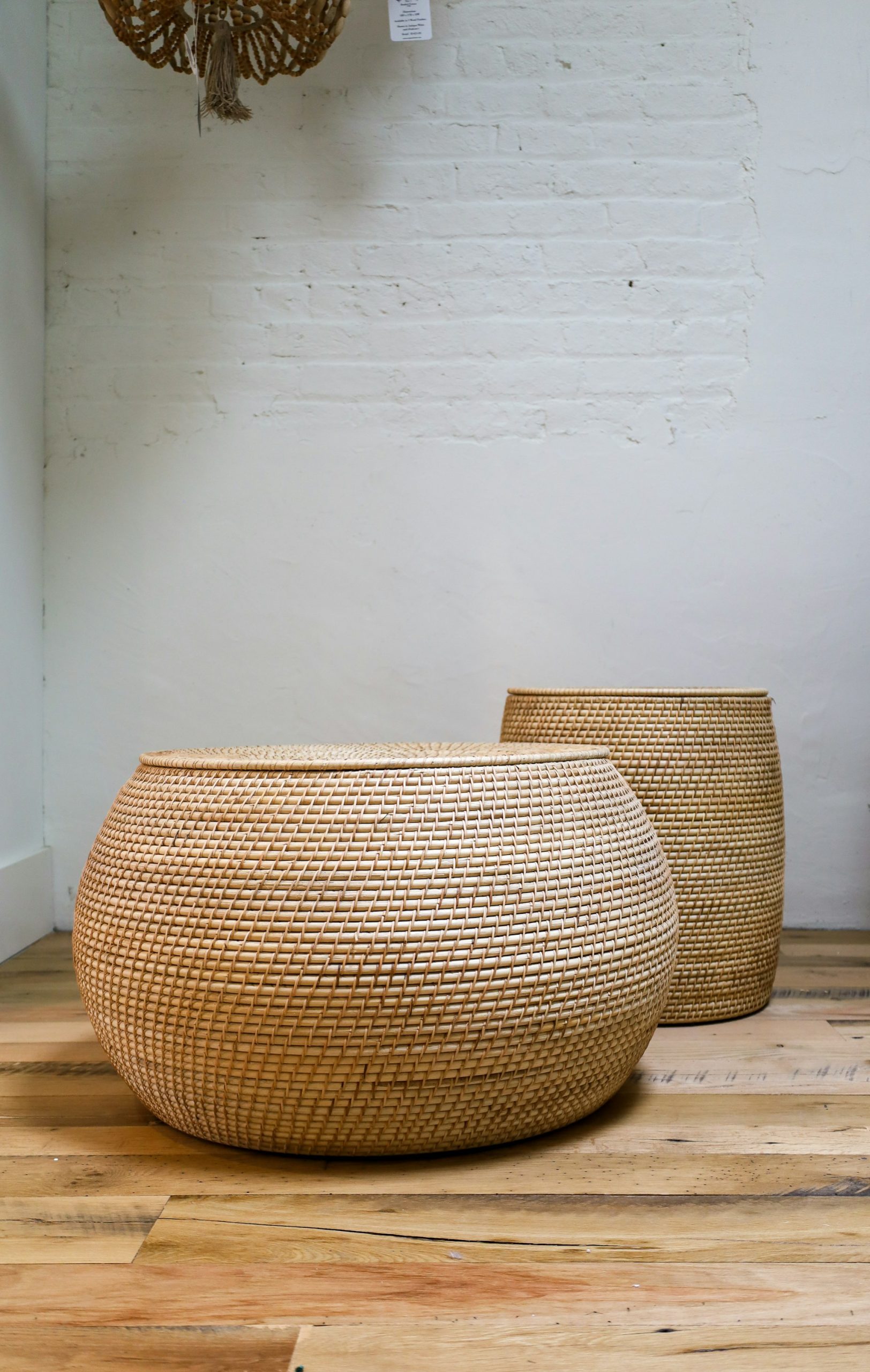 In its large size, it easily holds firewood, large plants, or extra throw pillows. Practical and decorative, it enhances the cozy, cocoon-like feel of a warm interior.