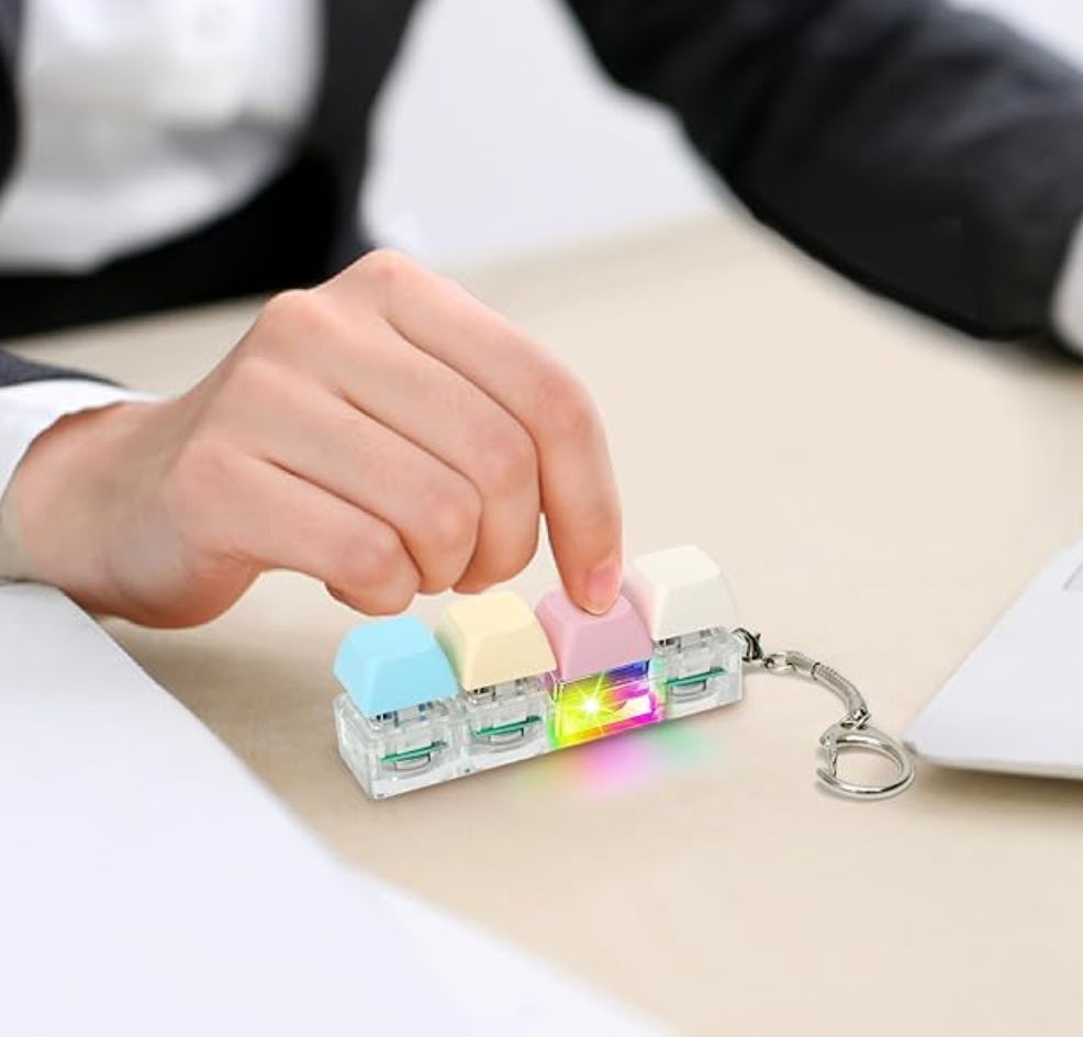 Amazon -Entertain yourself during boring calls with this keyboard fidget toy — just keep it out of frame. It lights up and changes color for a visual and tactile experience. With its sturdy metal keychain, it clips onto backpacks and keyrings, so you can take it wherever you go. It measures just 3 inches in length and fits snugly in the palm of your hand.