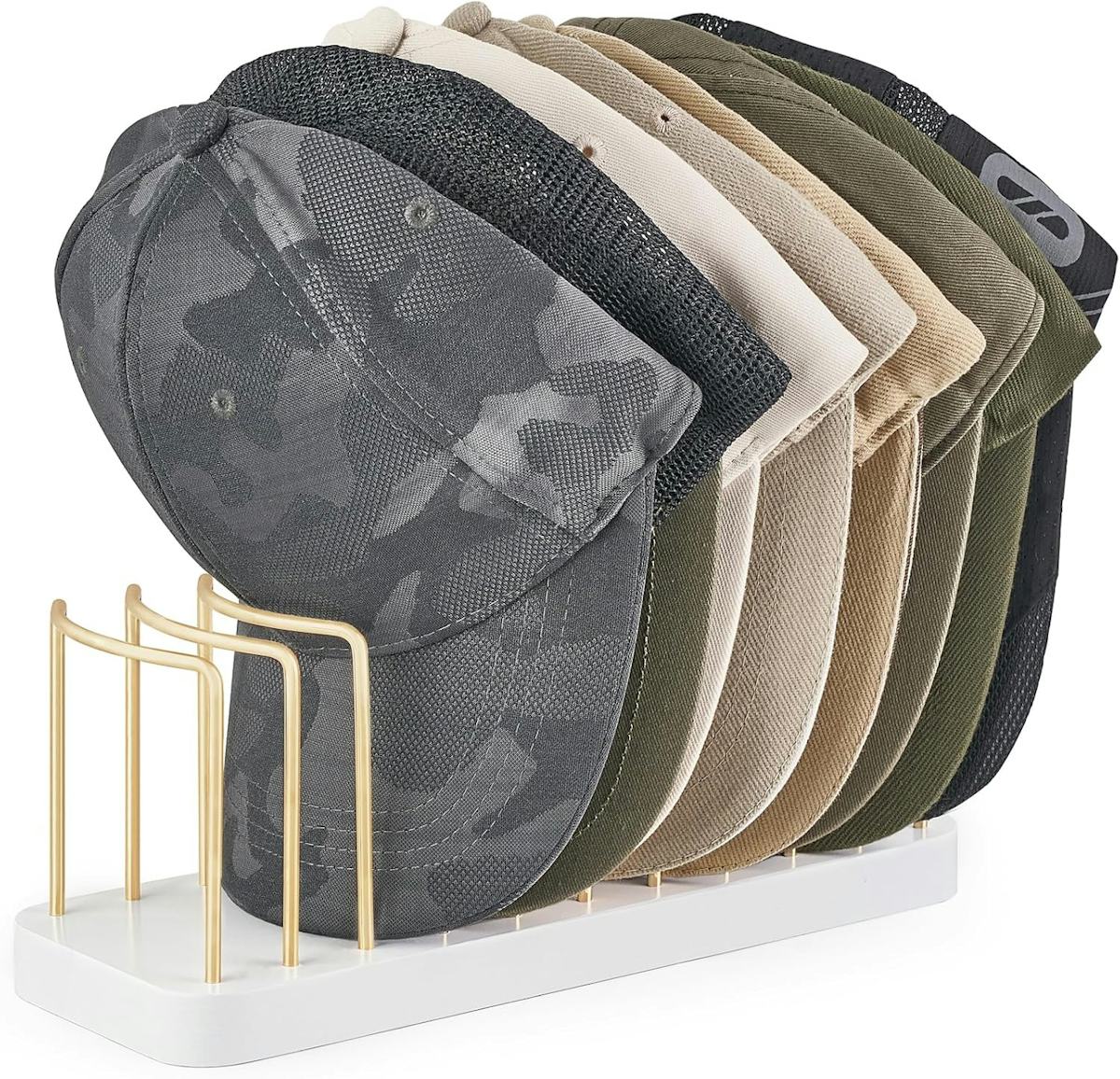 amazon -This tabletop rack is a storage upgrade for anyone with a big baseball hat collection. It displays up to 10 caps upright, so you can actually see what you own and grab one without rummaging. The curved metal frame helps hats keep their shape instead of getting squished, and the compact footprint makes it easy to park on a dresser, closet shelf, or desk.