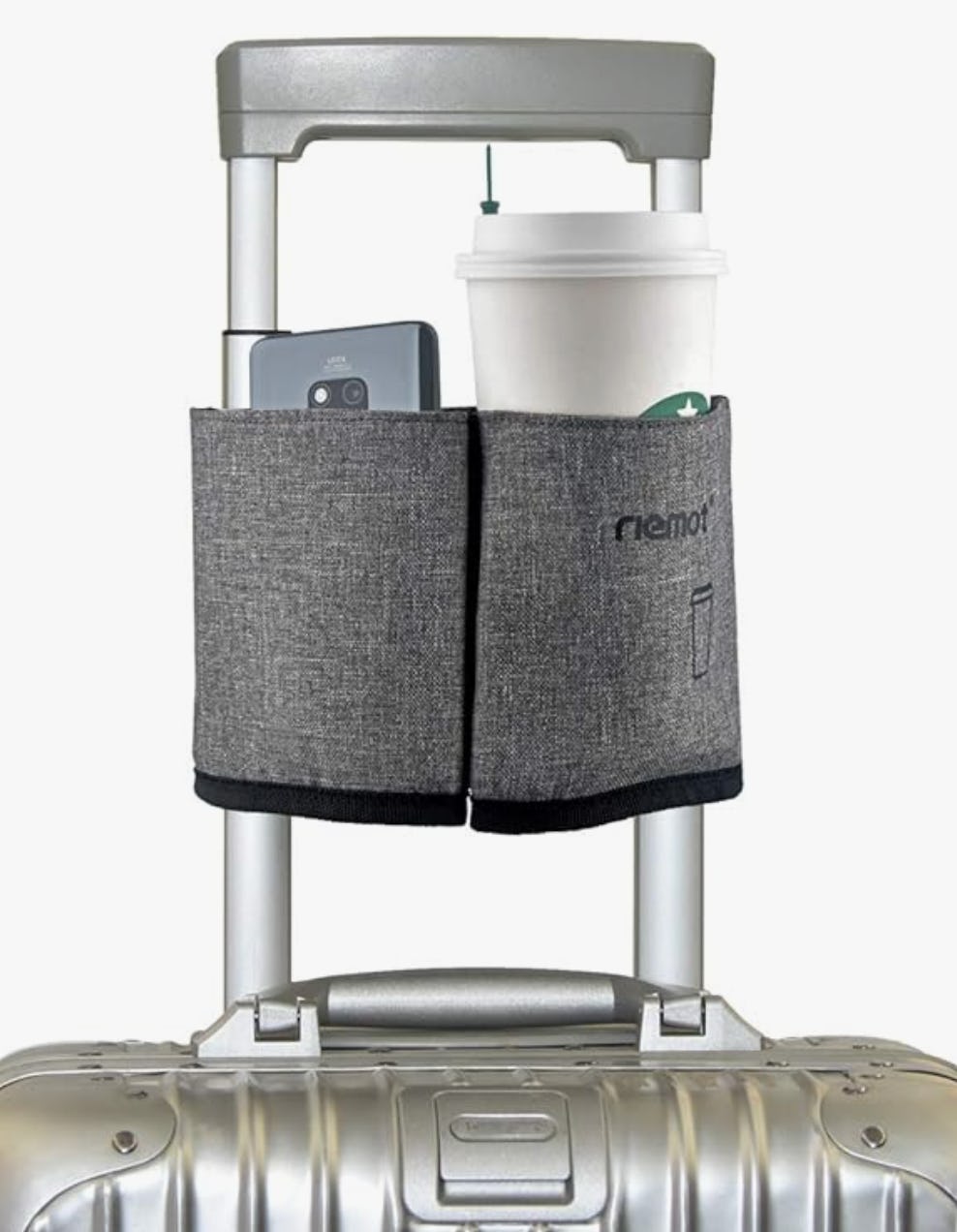 Amazon -With three pockets, this travel caddy loops around your luggage handles to hold drinks, phones, and other essentials. Its durable Oxford cloth is machine washable, so you can get rid of stains acquired along the way. Available in 26 colors and designs, you can adjust its closure to fit suitcases of all shapes and sizes.