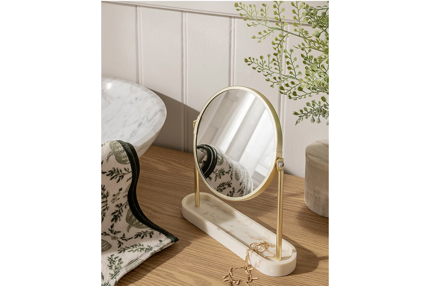 If you're short on space in your bathroom or dressing area, this compact yet stylish mirror and tray combo is a lifesaver. It’s perfect for storing your bits and bobs like jewellery, or for those essential makeup and eyebrow-plucking sessions. The marble effect adds a touch of elegance.