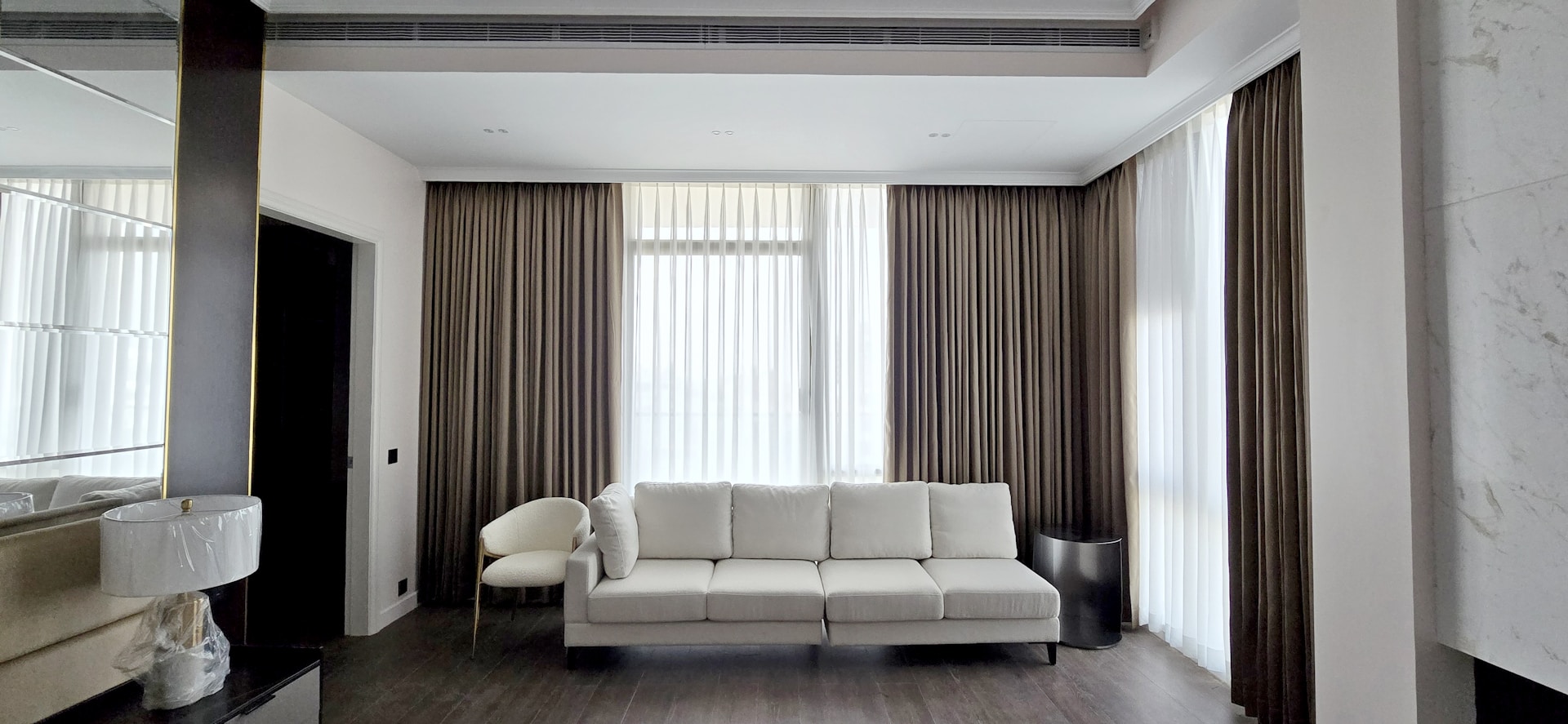 - Depth and Softness: Darker or warmer shades can effectively tone down the brightness of the white sofa while simultaneously adding depth and softness to the room. The curtains become a key element in achieving visual balance, contributing to a warm and harmonious atmosphere.