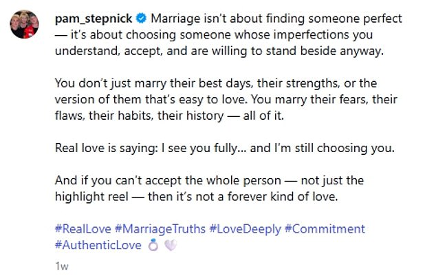 She said: 'Marriage isn't about finding someone perfect — it's about choosing someone whose imperfections you understand, accept, and are willing to stand beside anyway.
