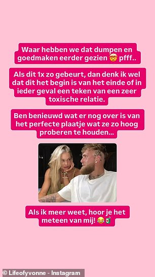 The reports emerged amid a lack of social media interaction between the pair in recent weeks, with fans noting that Paul had not liked a number of Leerdam's posts.