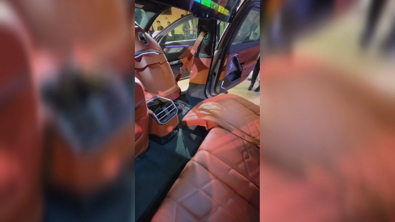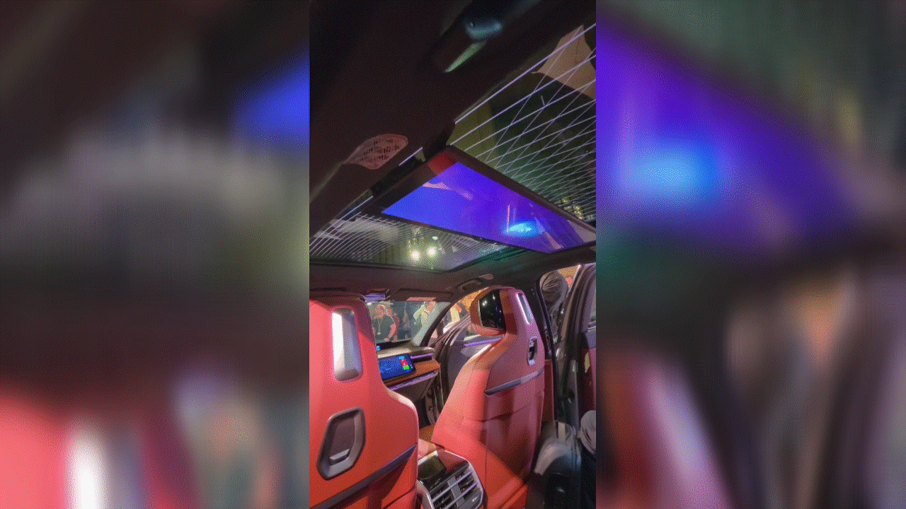 Similar to the 2026 BMW i7 M70 I drove for a week, sitting in the back seats offers a serious home theater experience thanks to the 31.3-inch 8K touchscreen that folds down from the glass roof.