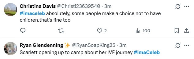 Scarlett, who is engaged to former police officer Scott Dobinson, went on to tell camp about her fertility struggles before falling pregnant with Jude.
