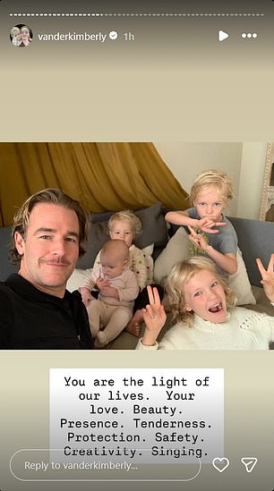 Kimberly added the caption, 'You are the light of our lives. Your love. Beauty. Presence. Tenderness. Protection. Safety. Creativity. Singing.'