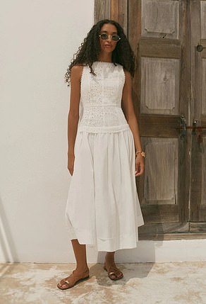 Mint Velvet Cotton Broderie Midi Dress £160