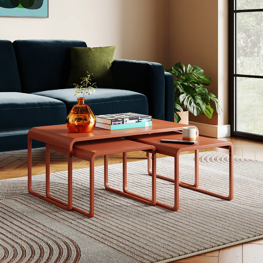 There are three tables for the price of one with this space-saving design. The sculptural metal nest tucks away neatly when not in use and fans out when you need the surface space, which is ideal for smaller living rooms or those who like to rearrange often. The bent metal frame has a pleasingly contemporary look and comes in black, stone, and orange umber.