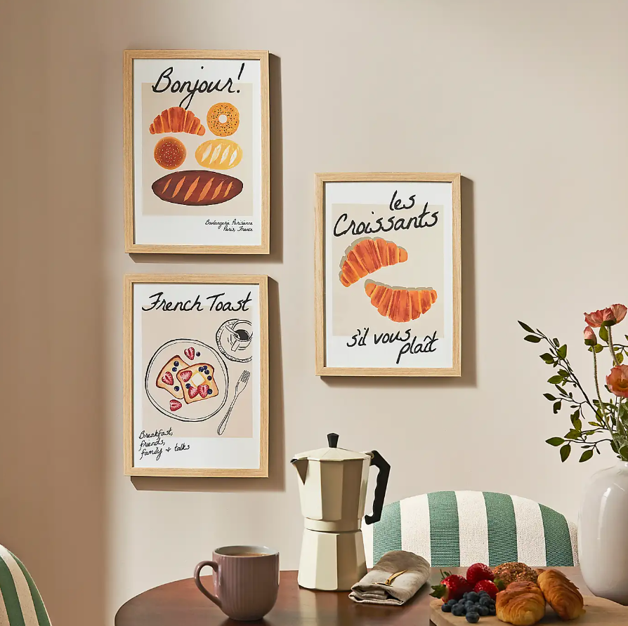 Add this three-set of ready-to-hang prints to your basket for a speedy way to refresh your walls with minimal effort. Each features Parisian-inspired illustrations that are perfect for a kitchen upgrade.