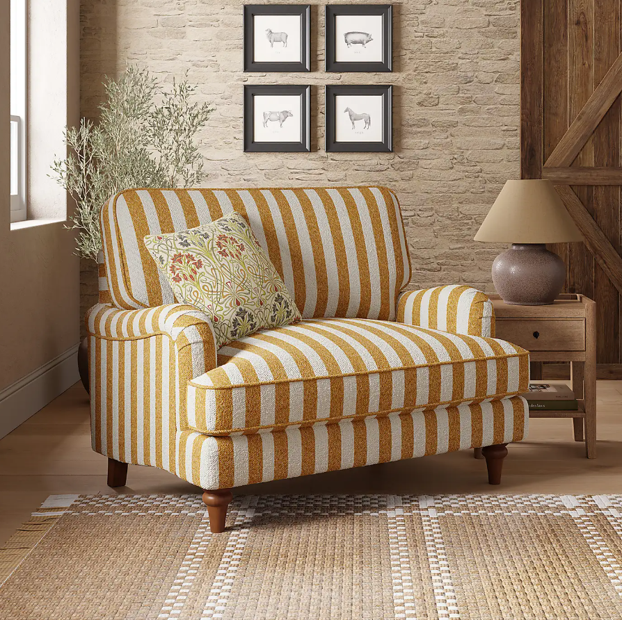 One of Dunelm's bestselling armchairs has had a stripey refresh, is slightly deeper and is covered in cosy boucle fabric. Fresh, modern and super comfy, snap up this £50 saving now.