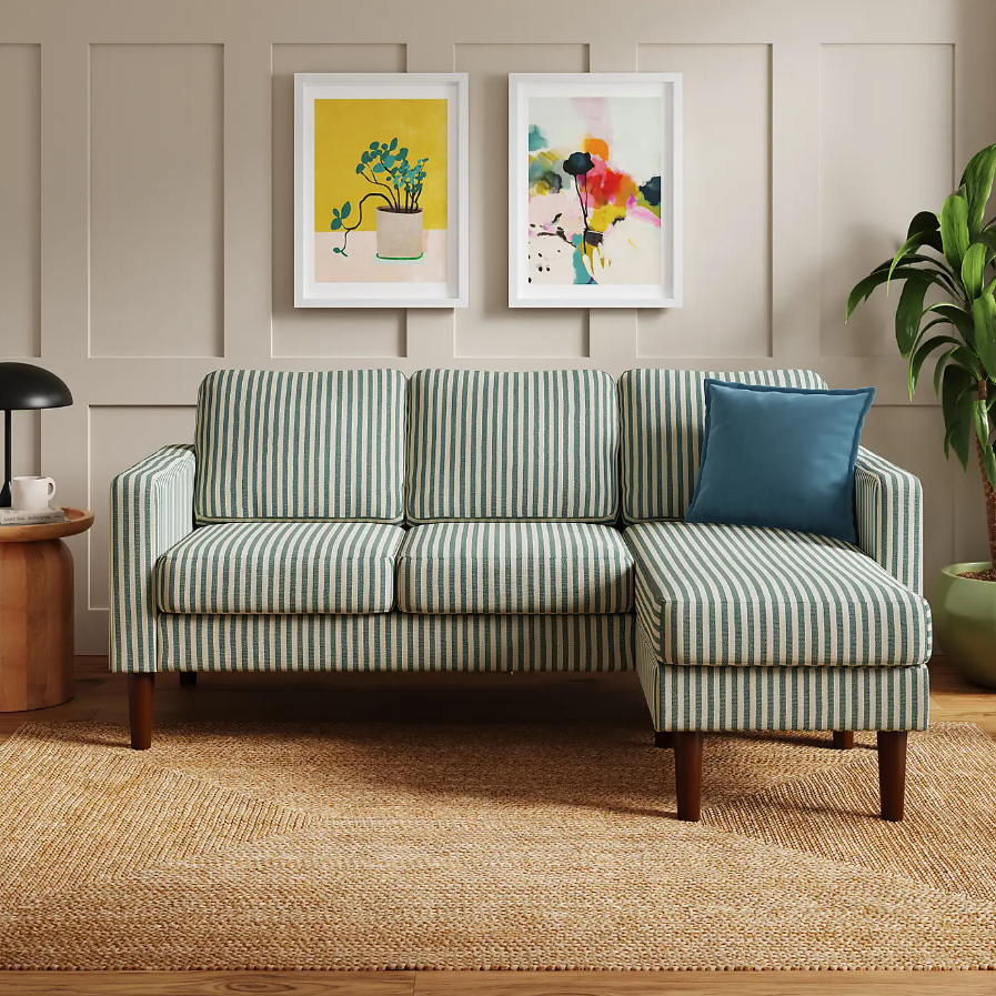 A corner chaise sofa for under £500 is already a win, but this Dunelm sale pick is now less than £350 in the sale. It has a smart reversible chaise design and a striking Linford fabric. It can seat four and is built on a responsibly sourced pine frame with walnut-effect legs.