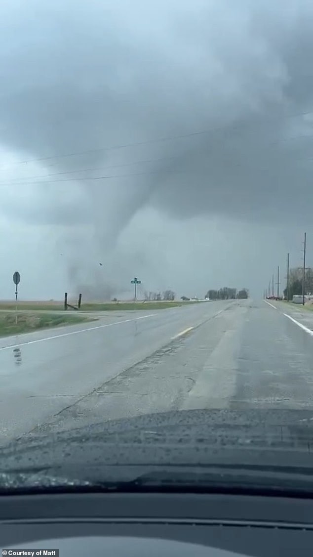 A storm chaser, only identified as Matt, shared a video with the Daily Mail of a massive tornado that touched down near the Minnesota towns of Chester and Marion.